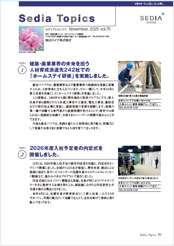 この度、セディアグループの旬な話題をお知らせする情報誌「Sedia Topics vol.75」を発刊いたしました。