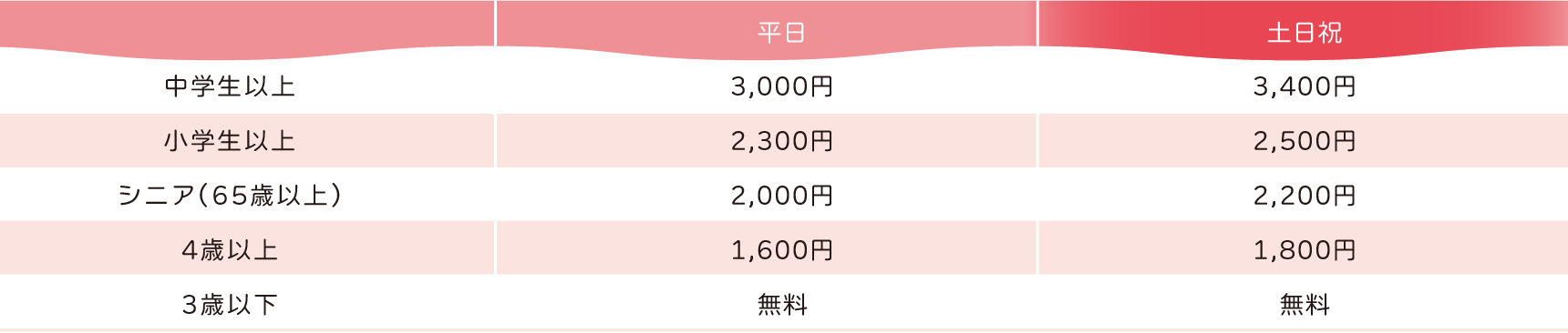 【いちご狩り体験 料金表】