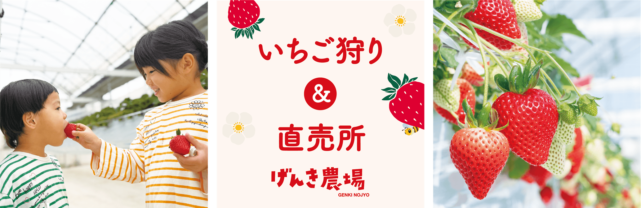 げんき農場のいちご狩り体験はご好評をいただいており、例年多くのお客様にご来場いただいております。